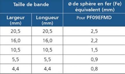 - Un détecteur très sensible pourra détecter une bille ferreuse de 0,6 mm de diamètre.