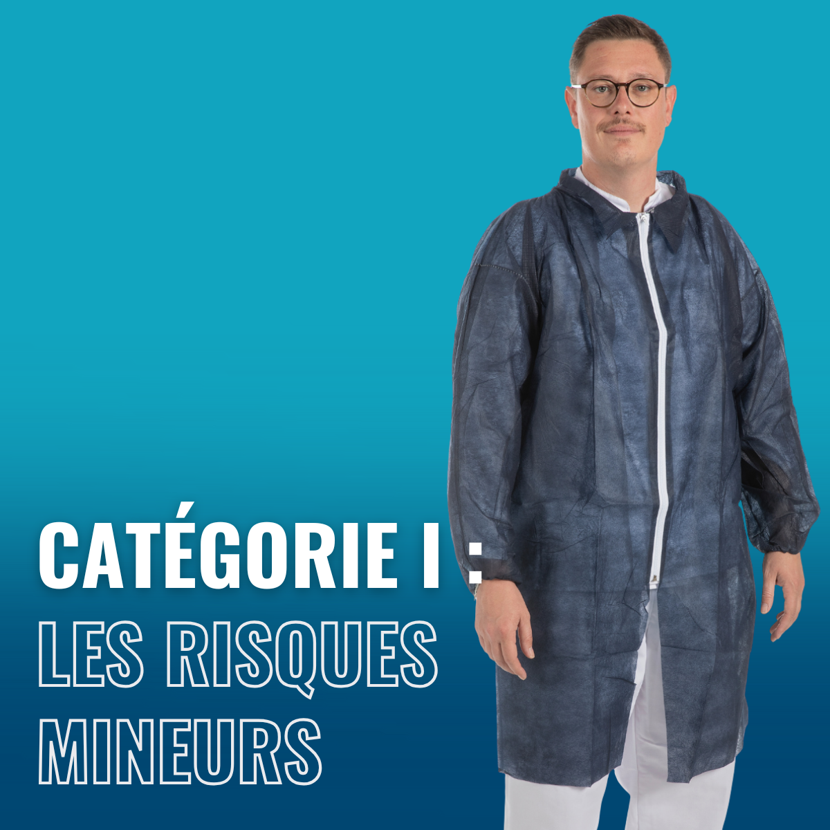 Cette première catégorie regroupe les EPI conçus pour protéger contre des risques faibles, dont l’utilisateur peut évaluer lui-même les effets (par exemple, les salissures ou les irritations superficielles).