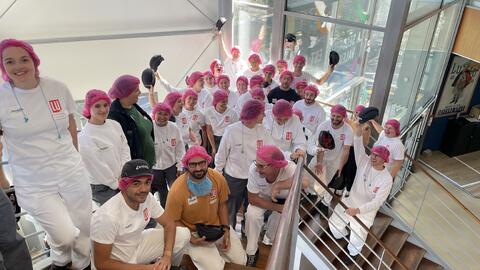 Dans les ateliers, les laboratoires, les cuisines et les entrepôts, le rose s'est invité partout, créant une vague de bonne humeur et un rappel visuel fort :